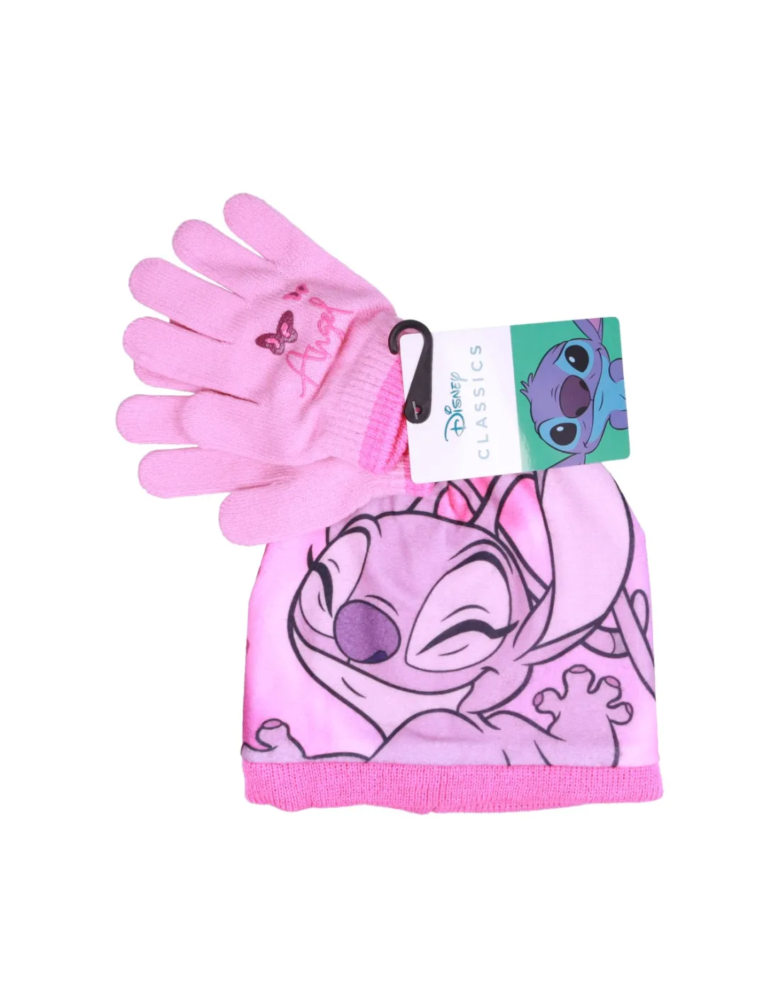 Conjunto Infantil Gorro y Guantes Rosa Stitch Disney
