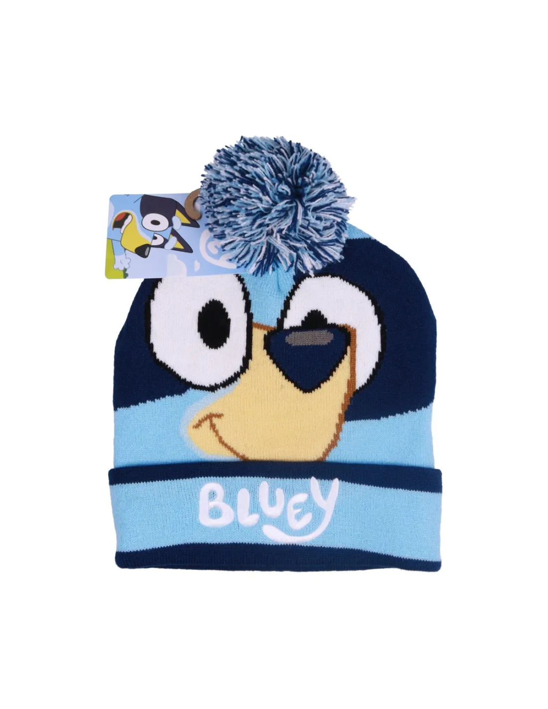 - Diseño: Presenta un divertido estampado de Bluey, el perro más querido por los niños, con grandes ojos y una sonrisa amigable. El gorro viene en tonos de azul y blanco y cuenta con un pompón en la parte superior que añade un toque de diversión.
