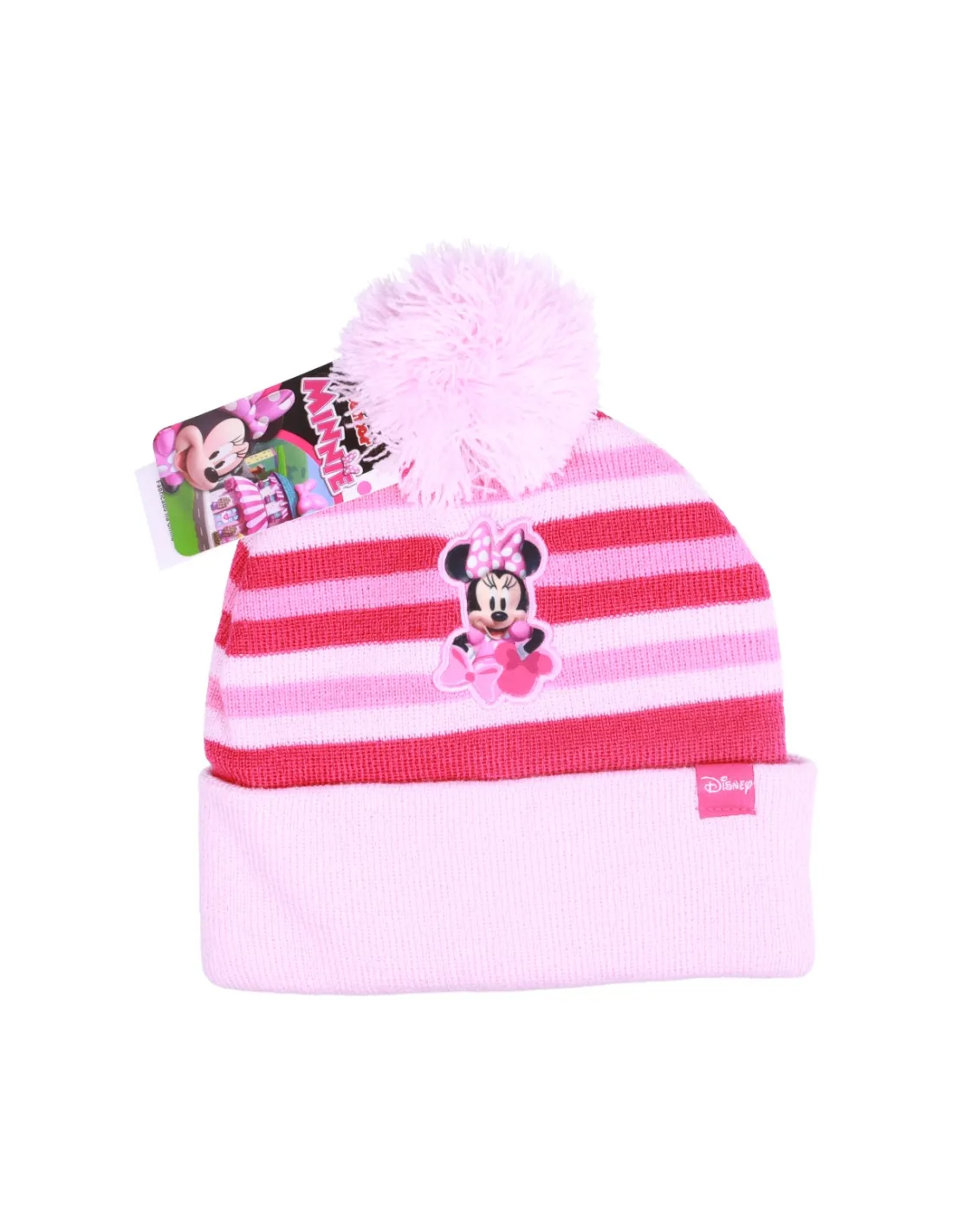 - Diseño: Presenta un vibrante patrón de rayas rosas y blancas, adornado con una imagen de Minnie Mouse y un pompón rosa en la parte superior que añade un toque de gracia y estilo.