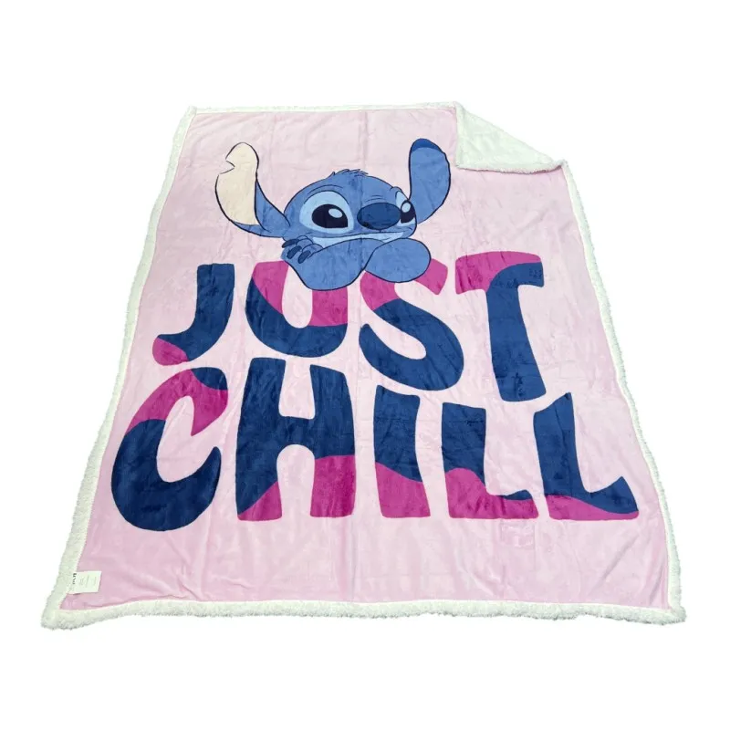 Manta Polar Gruesa "JUST CHILL" Disney Stitch 120x 150 cm