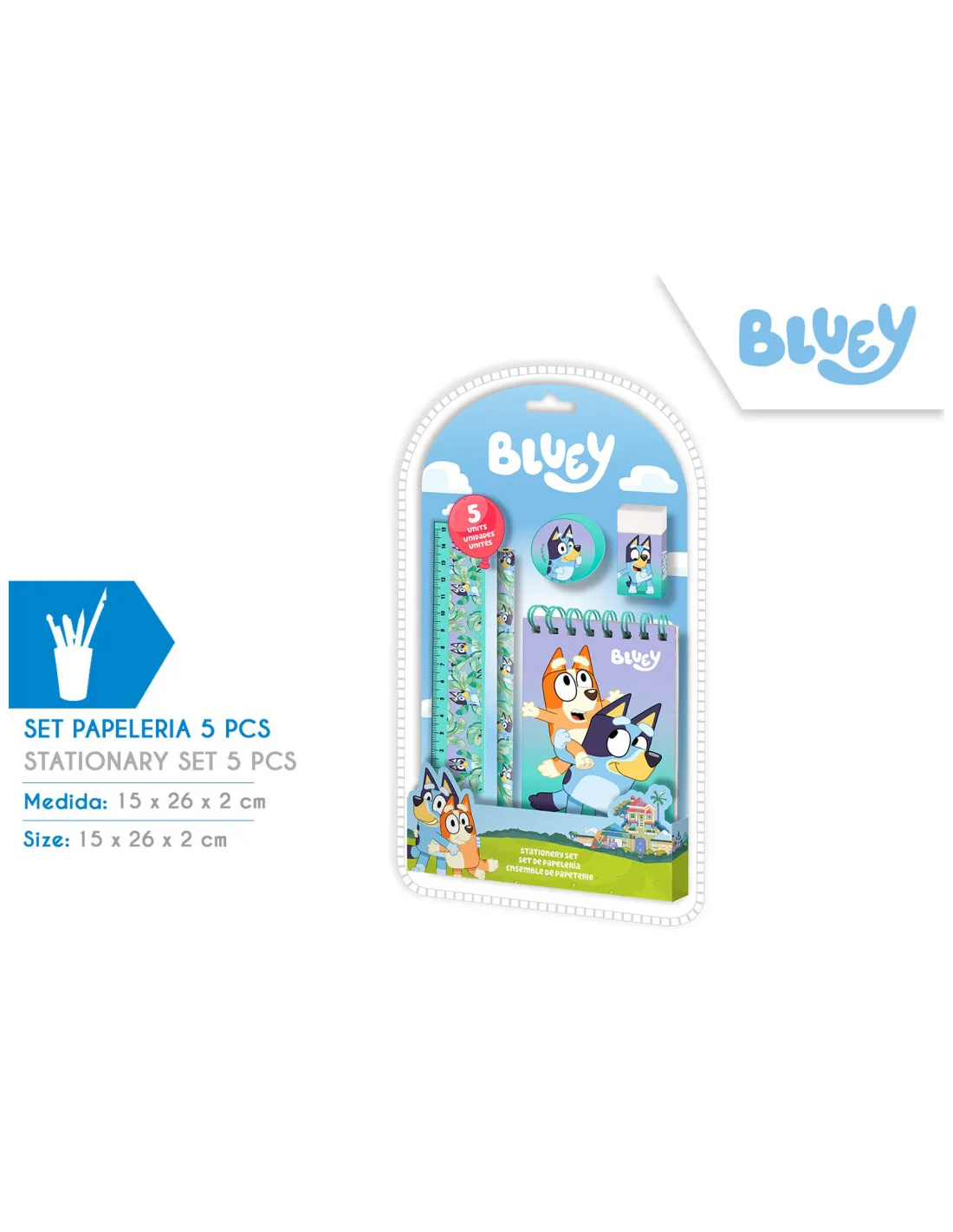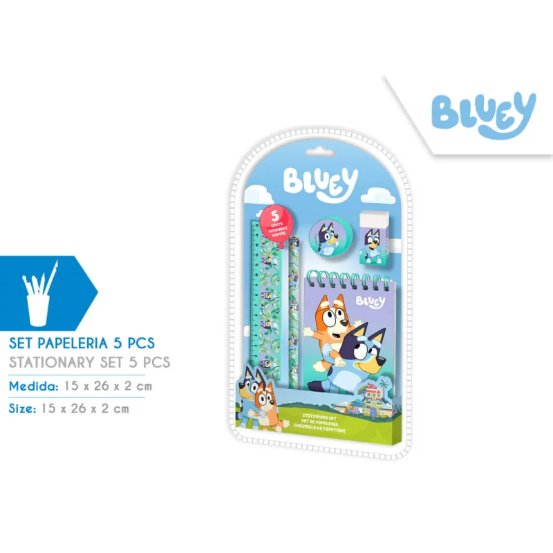 Sumérgete en el mundo de la creatividad y la diversión con el Set de Papelería Bluey de 5 piezas, perfecto para los pequeños fans de la serie animada. Este kit incluye todo lo necesario para que los niños puedan expresar su imaginación y mantenerse organizados, todo ello con sus personajes favoritos. Diseñado para ser práctico y atractivo, este set es ideal para hacer que la vuelta al cole sea emocionante y llena de aventuras junto a Bluey y su familia.