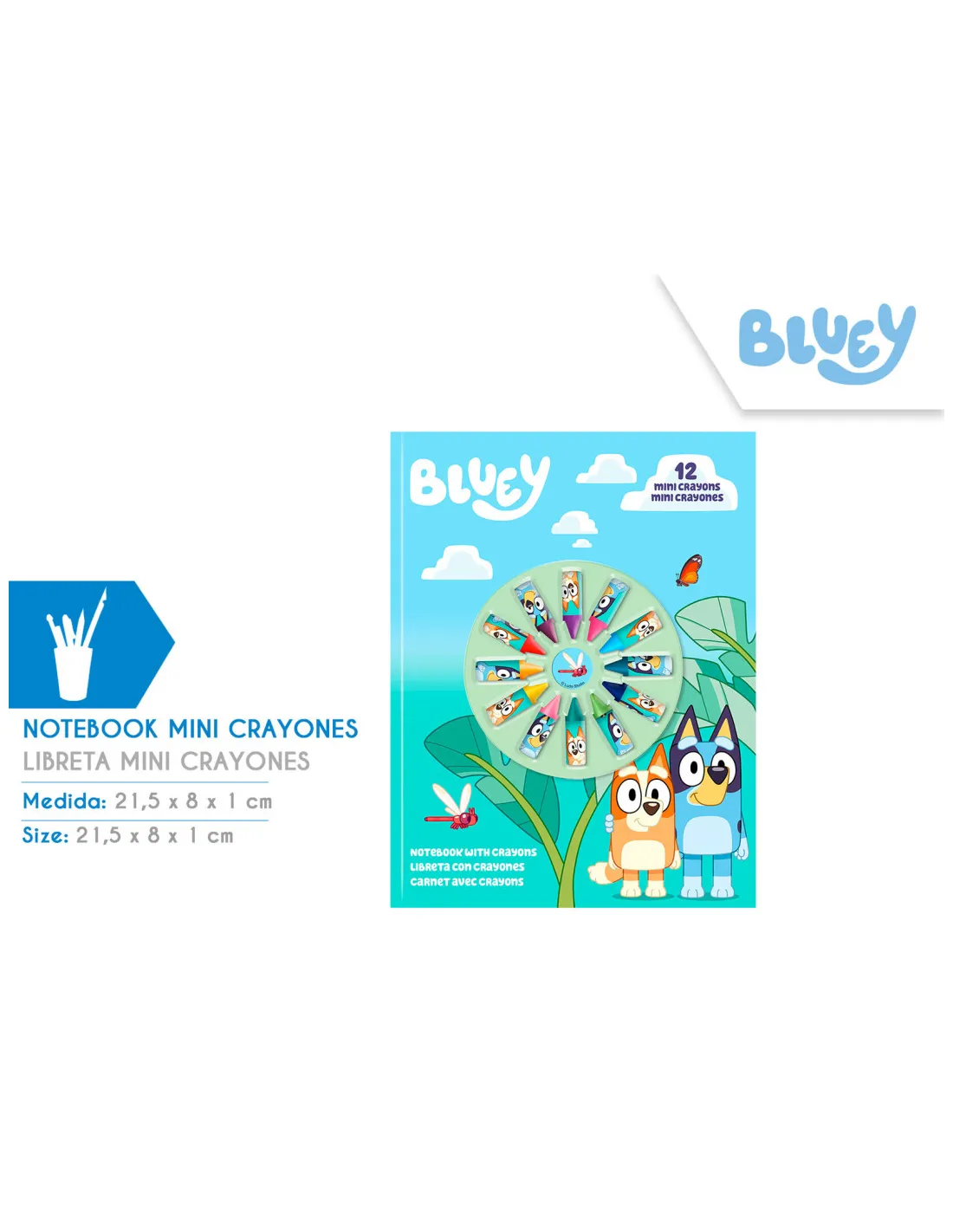 Descubre el encanto y la funcionalidad del Notebook Mini Crayones de Bluey, un producto diseñado para desatar la creatividad y la diversión en los más pequeños. Este cuaderno compacto, acompañado de 12 mini crayones coloridos, es perfecto para llevar a cualquier lugar, asegurando entretenimiento y desarrollo artístico en todo momento. Su diseño vibrante y los personajes adorados de Bluey hacen de este set el regalo ideal para niños, fomentando su expresión artística de manera divertida y educativa.