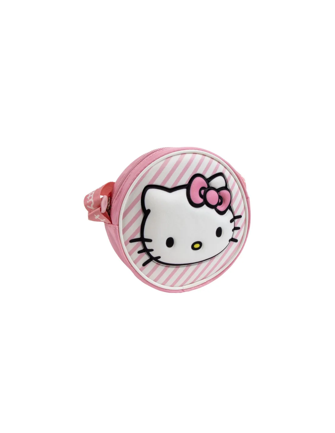 Descubre la encantadora bolsa de Hello Kitty, perfecta para añadir un toque de alegría y estilo a la vida diaria de los más pequeños. Diseñada con un adorable estampado de rayas y el icónico personaje de Hello Kitty, esta bolsa redonda no solo es un accesorio atractivo, sino también un compañero práctico para llevar pequeños tesoros. Su tamaño compacto y diseño ligero la hacen ideal para que los niños la lleven cómodamente a cualquier parte.