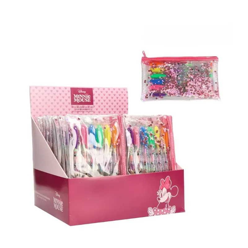 Sumérgete en el encantador mundo de Minnie Mouse con este exclusivo set de bolígrafos de gel, perfecto para añadir un toque de magia y color a tus notas y dibujos. Cada bolígrafo está diseñado con detalles vibrantes y llenos de brillo, asegurando que cada palabra y trazo resalte con estilo y diversión. Ideal para coleccionistas y jóvenes creativos, este set no solo es práctico sino también un hermoso objeto de deseo que captura la esencia de la alegría y la creatividad.